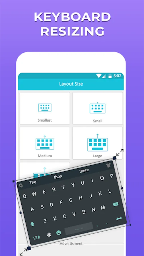 Resize your keyboard to multiple sizes like small, medium, large & extra large.