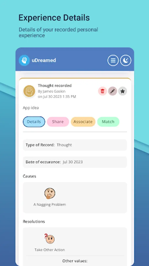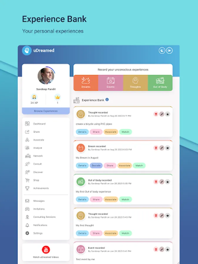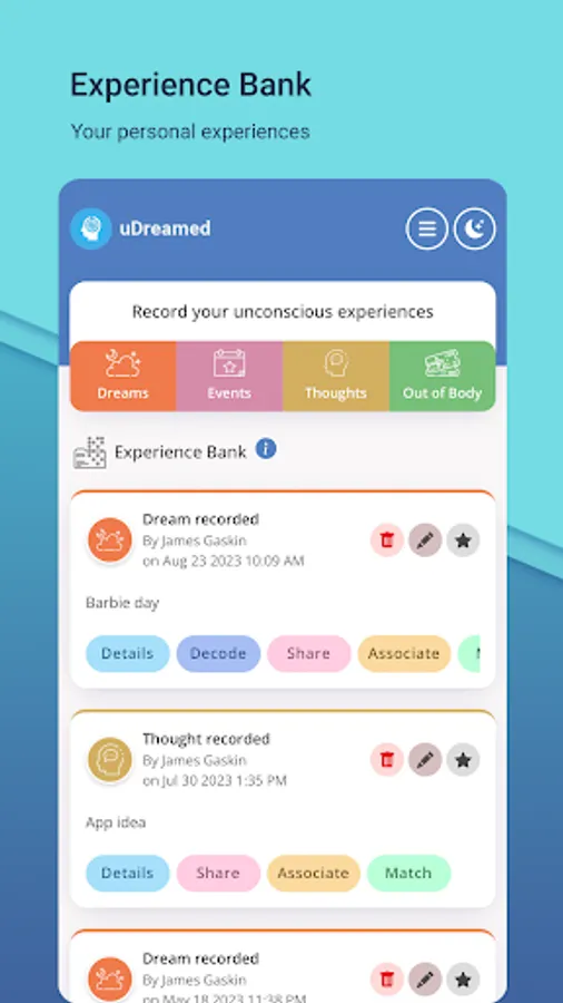 • Share your unconscious experiences with whomever you choose, while others can also share with you and you can comment on each other's experiences.