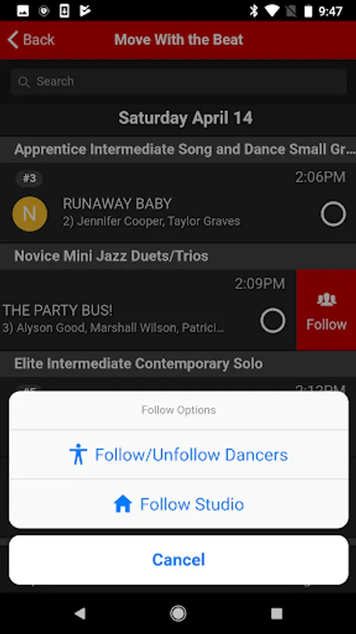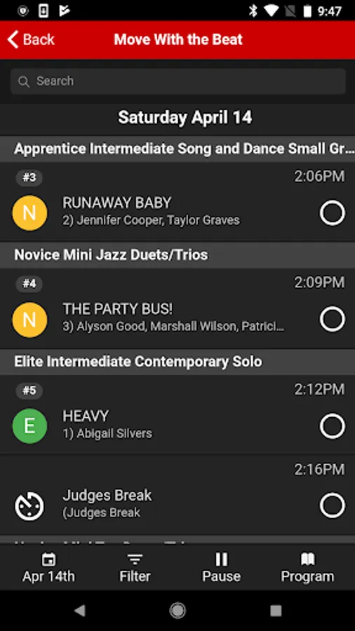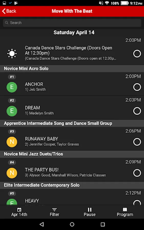 StageSprite provides program information for an event. During the event StageSprite will track the performances that are on stage. Upon conclusion of the event, StageSprite can be used to access a list of the performances including the name of the routine, names of the performers, performance timing and other important statistics.