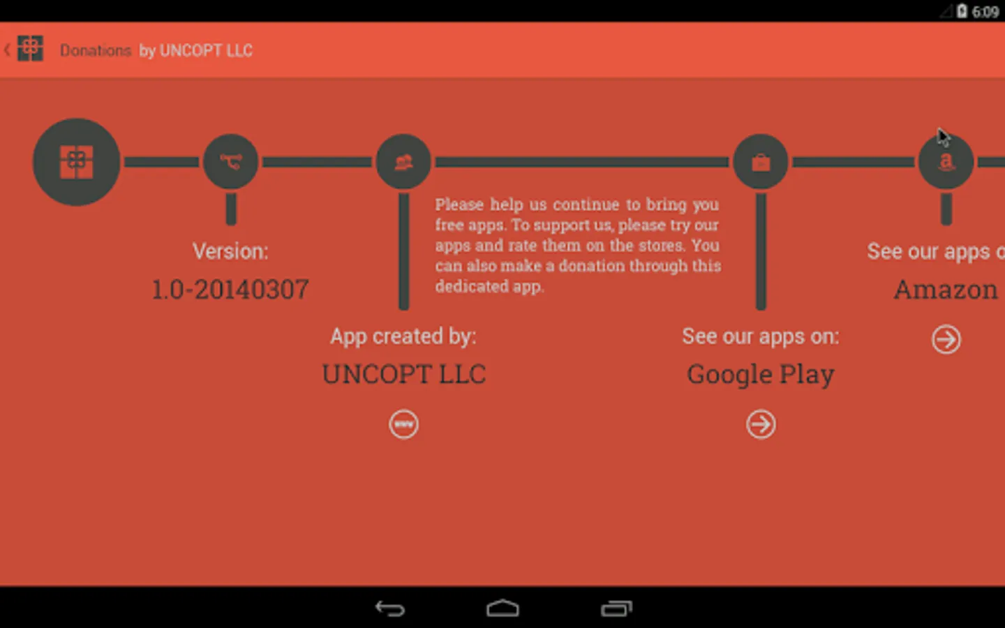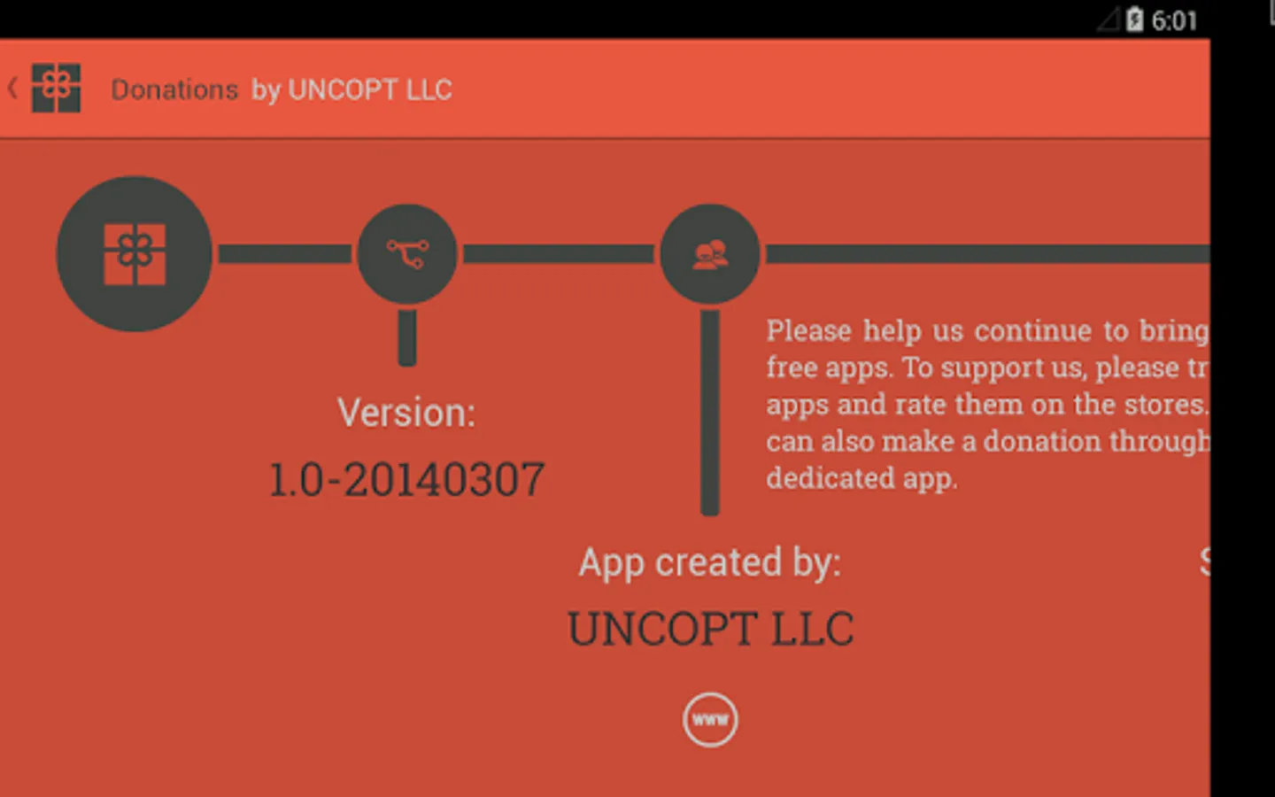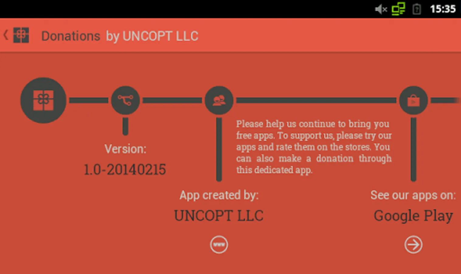 Support UNCOPT LLC Android developers and help them bring you free apps by donating money with this dedicated donation app. Donations are made with In-App payments.