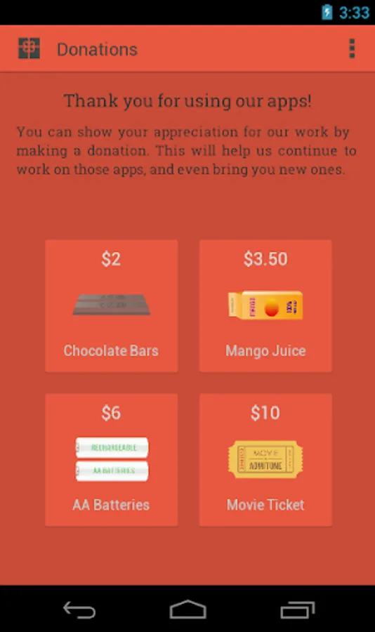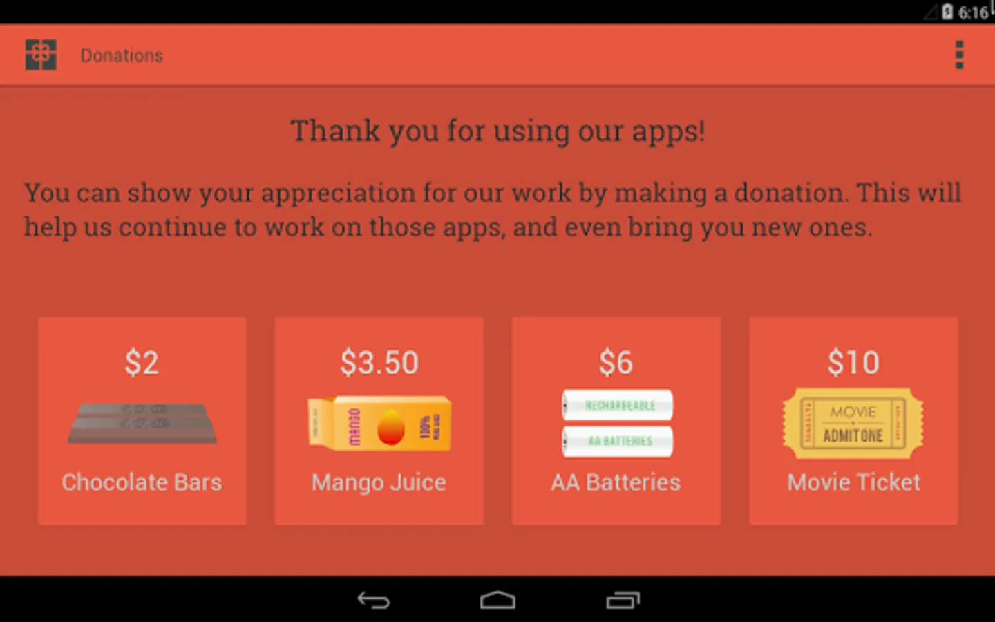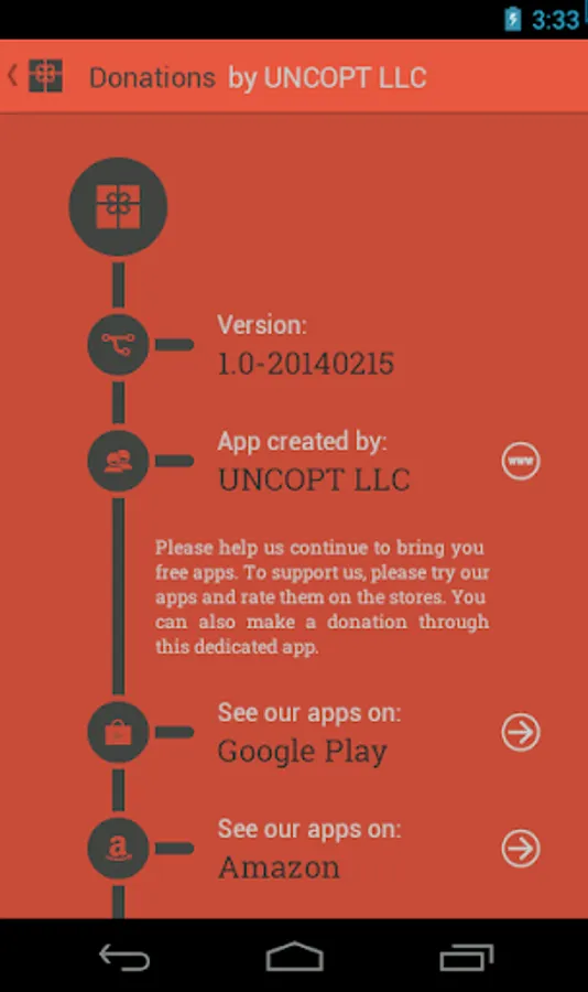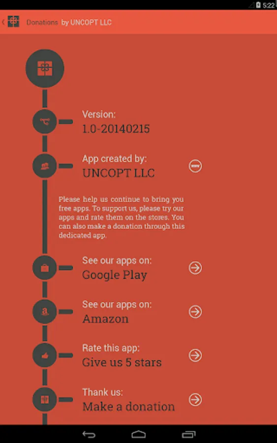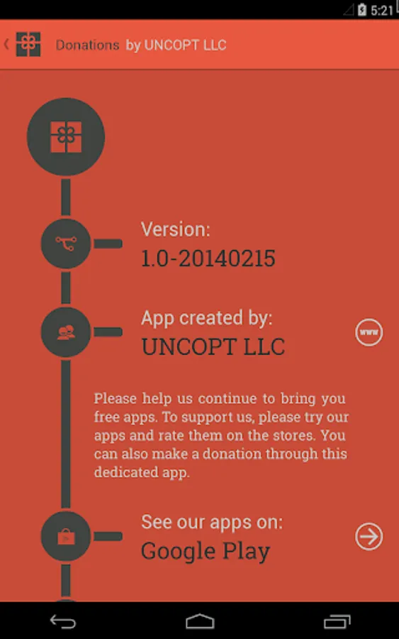 Support UNCOPT LLC Android developers and help them bring you free apps by donating money with this dedicated donation app. Donations are made with In-App payments.