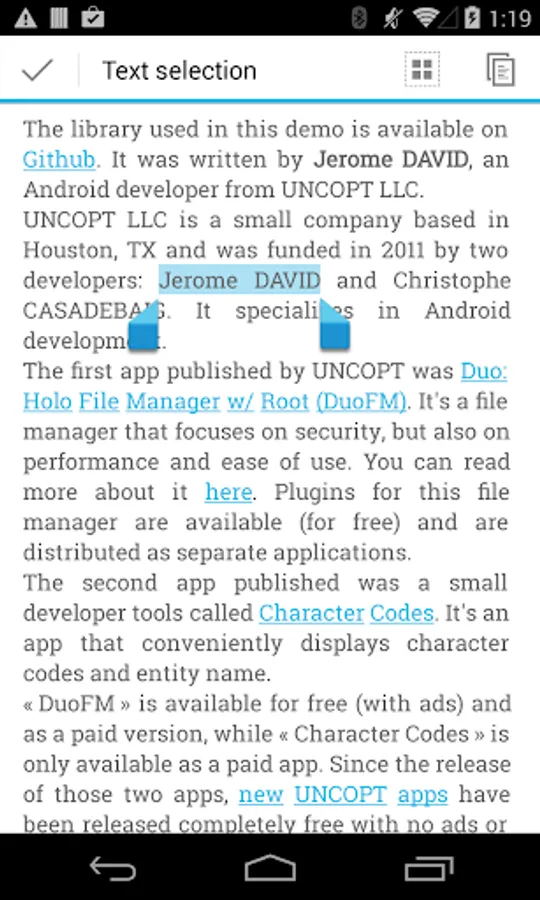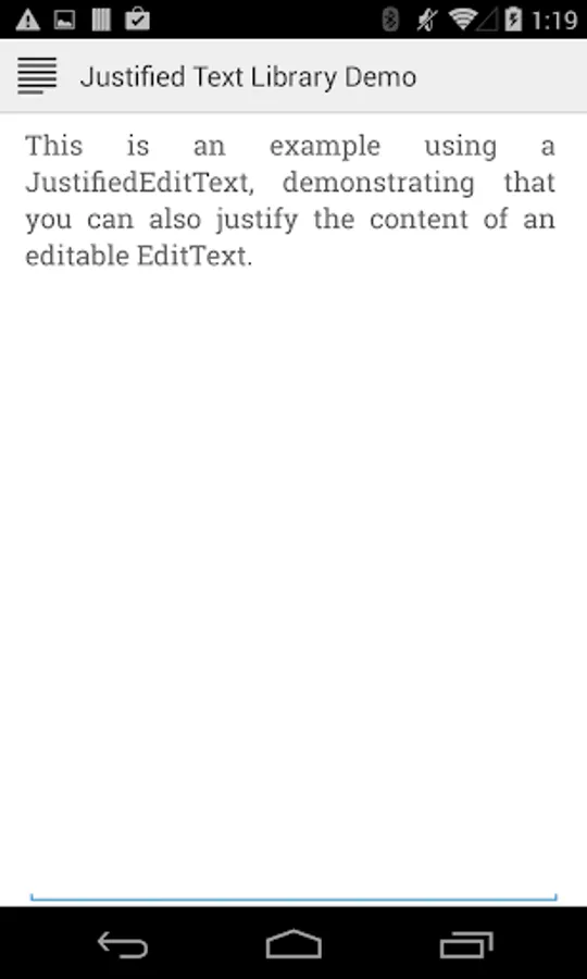 This is a demo application for a library that provides versions of TextView and EditText with justified content.