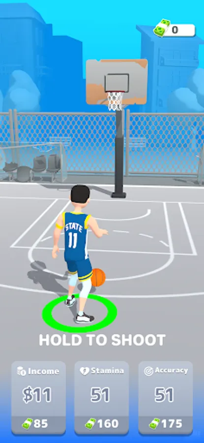 Upgrade your basketball skills in training mode, compete with opponents in the court and be the top scorer of all time!