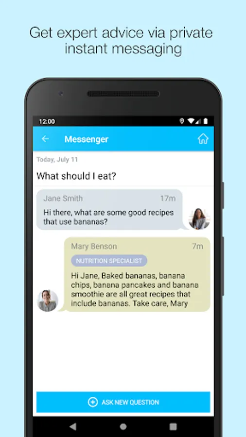 • Unlimited Messaging with a Nutrition Specialists to answer questions and provide advice