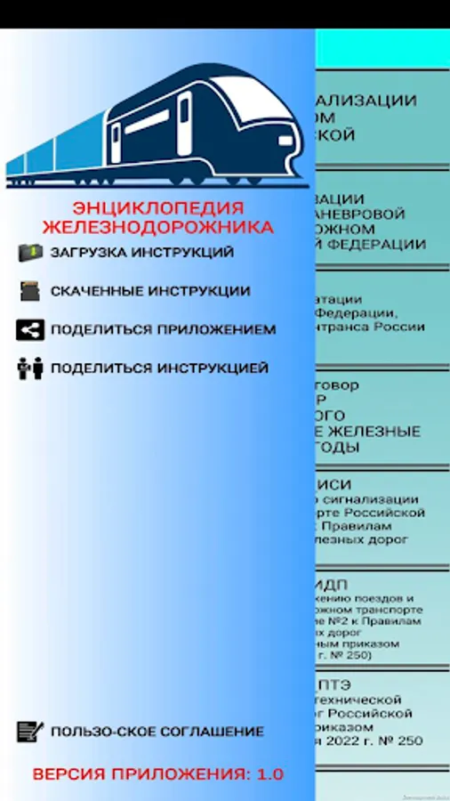 Base of instructions and orders for the railwayman. Any document is downloaded to the application's memory and is available for viewing in the application at any time.