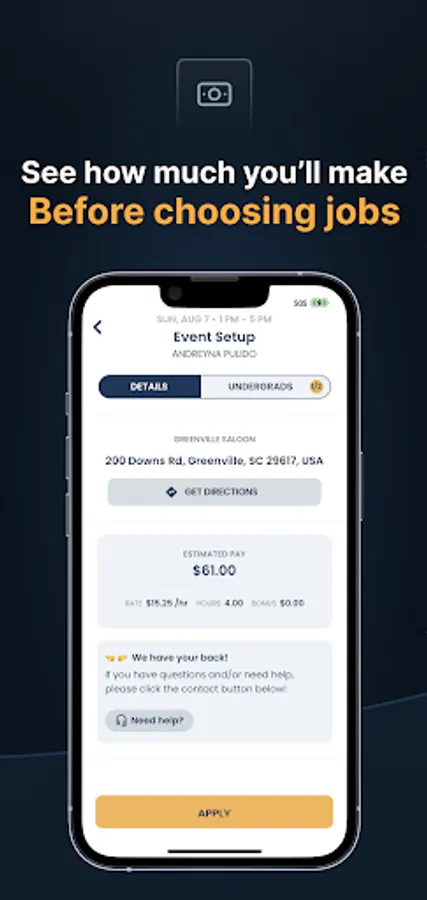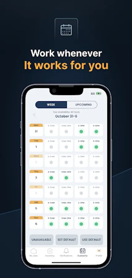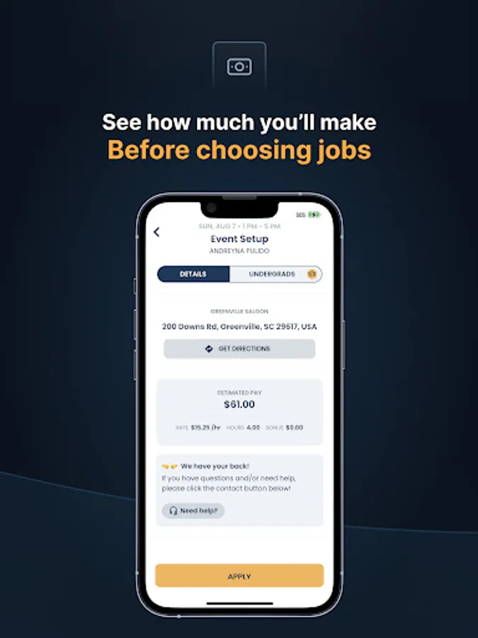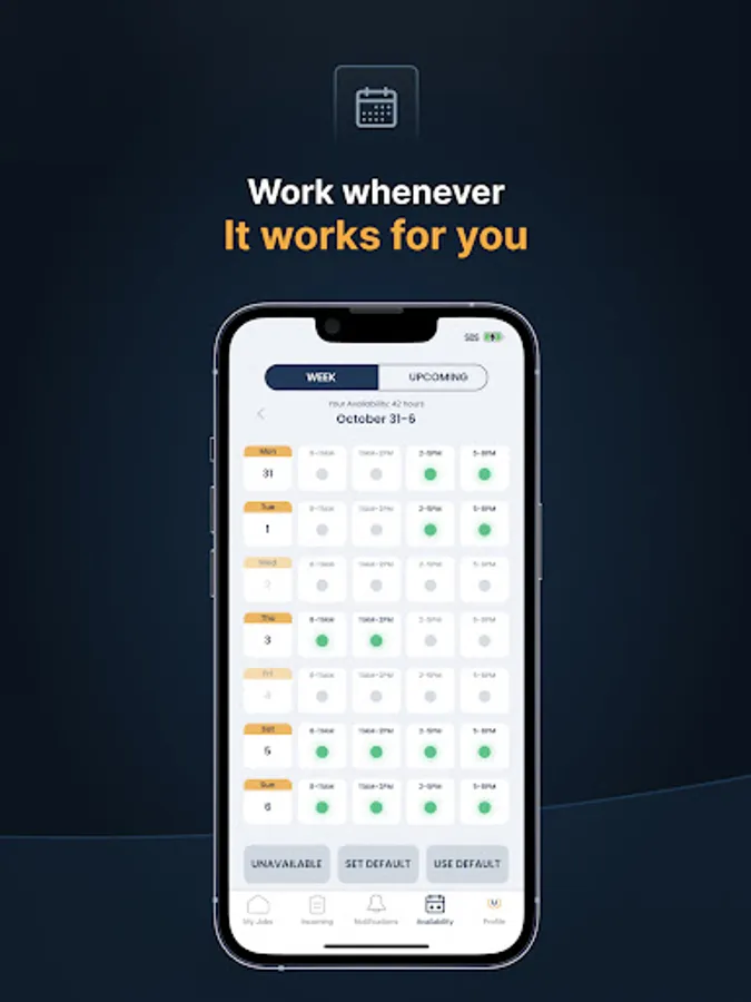 Select the hours you want to work and pick up available jobs that fit your schedule - all within the app. You can work as little or as much as you want.