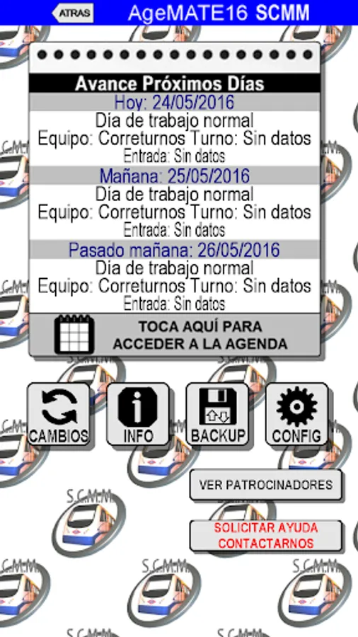 Application of specific Agenda for agents of the operation (MTE) of Metro Madrid. It helps to manage the work agenda, shifts, breaks, changes, etc.