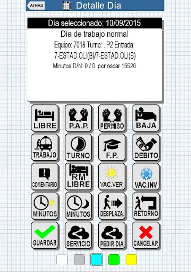 - Personalized control of PaP, Permits, Discharges, Training, Holidays, P.F.A, for each day of the year.