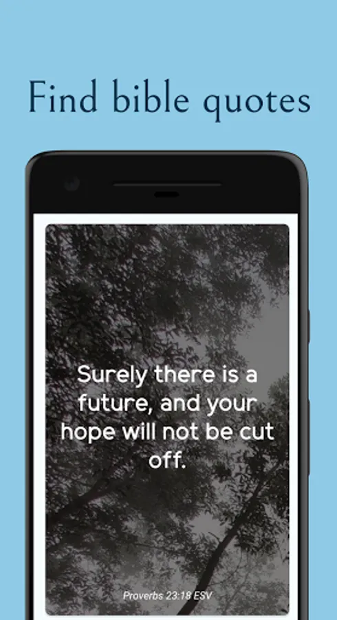 The topics chosen for the Bible quotes and Bible verses in this app go from strength, Jesus, love and forgiveness to pride, miracles, prayer and healing.