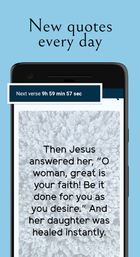 Start each day by receiving a notification with a new Bible verse or Bible quote.