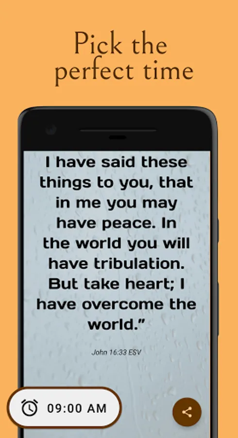 Start each day by receiving a notification with a new Bible verse or Bible quote.