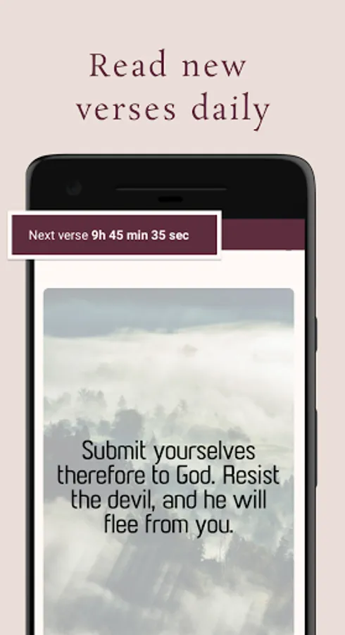 Start each day by receiving a notification with a new Bible verse or Bible quote.