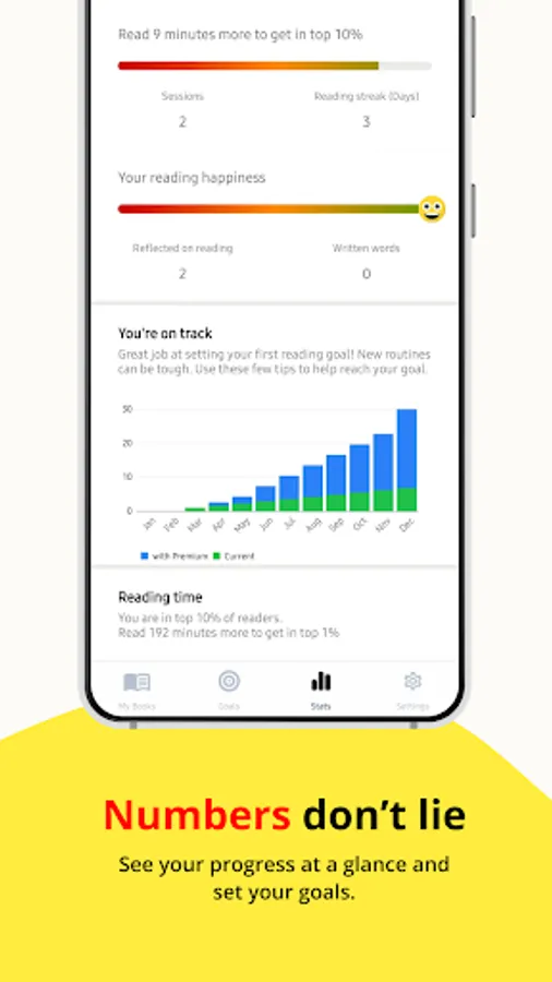 - Get personalized book stats, analytics, and tips on your reading behavior: completed reading sessions, total read pages, average read pages per hour, estimated completion date for a book based on your reading speed, longest reading session, reading streaks, daily graph of time spent reading.
