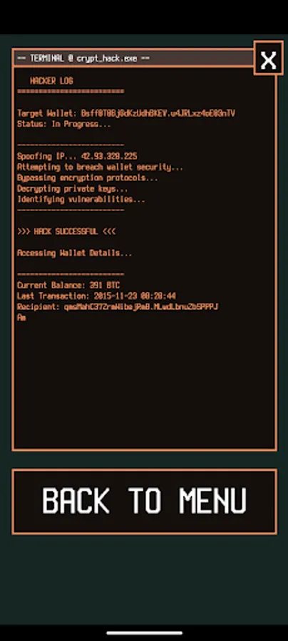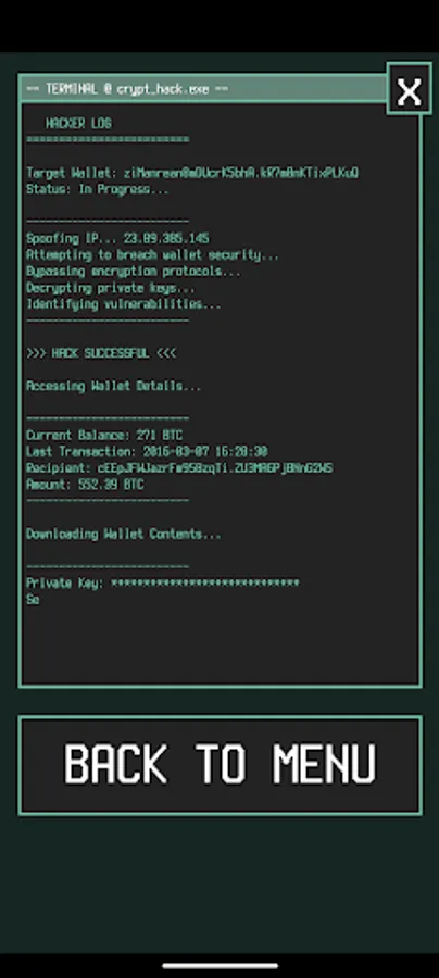 Bitcoin Hacker Simulator Prank is intended for entertainment purposes only. It does not perform any actual hacking or provide access to real Crypto Bitcoin wallets. This app should not be used for any illegal activities or to deceive others. Always respect the law and the privacy of individuals.