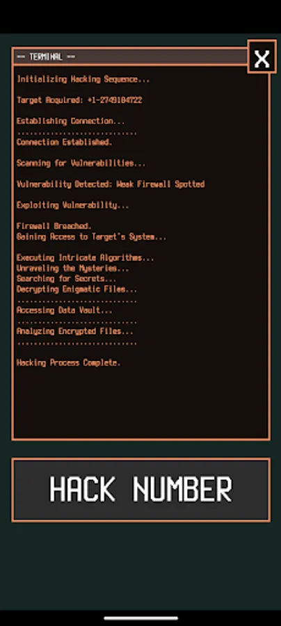 🔒 Simulated Hacking: Experience the thrill of hacking into phone numbers without any real-world consequences.