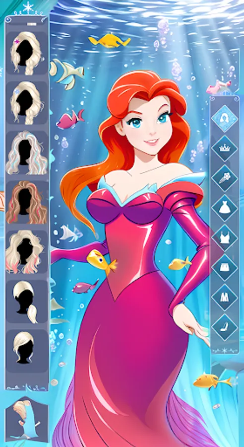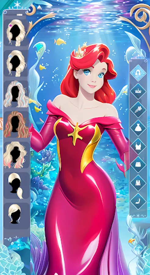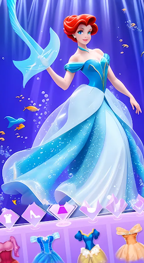 🌊 Customize the princess's appearance with stunning accessories inspired by the sea