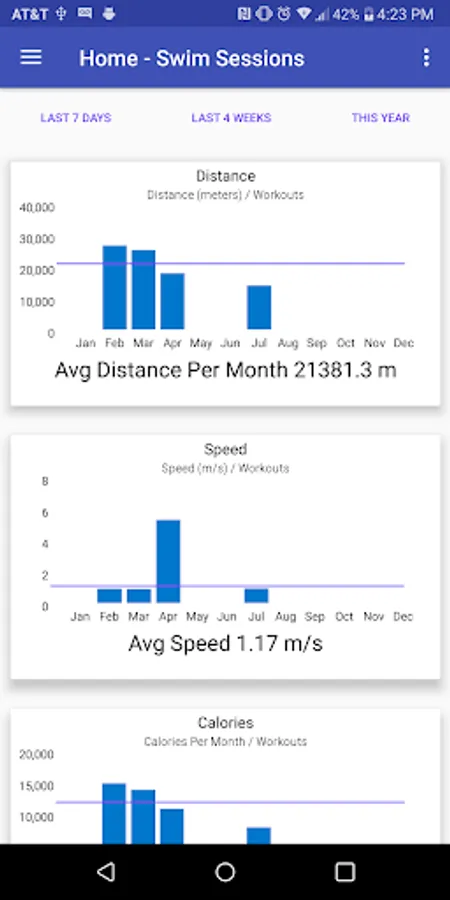 - See daily, weekly, and monthly breakdowns at a glance, or focus in on just one workout