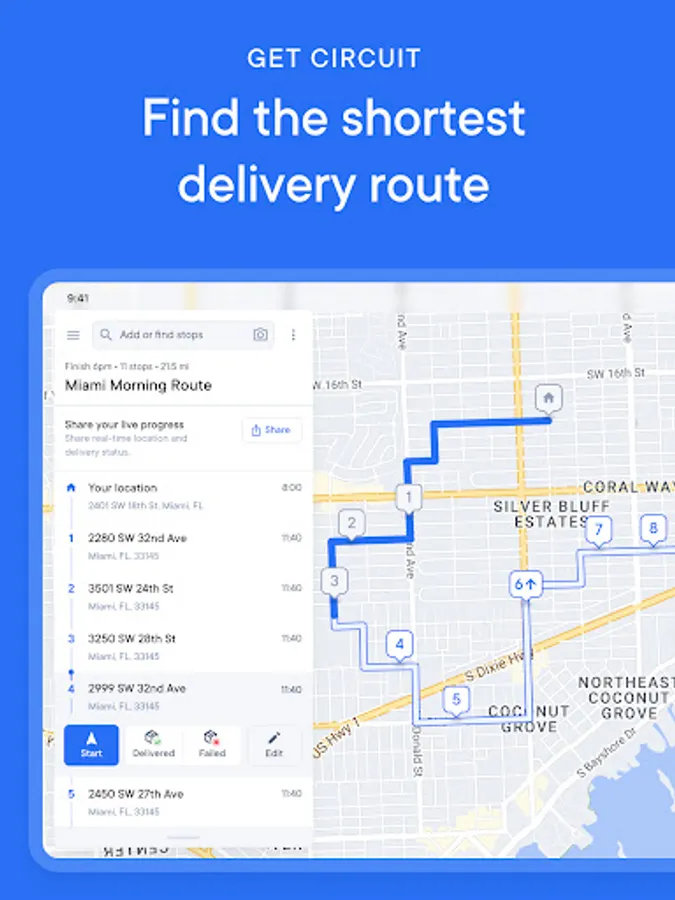 Optimize for the shortest routes, avoid traffic and delays, and quickly find packages in your vehicle with Circuit Route Planner, the easiest delivery driver app for couriers.