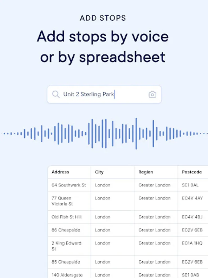 Enjoy quickly adding multi-stop delivery addresses in just three taps on the easiest delivery driver app. Add a list of addresses in minutes, get the fastest routes in seconds.