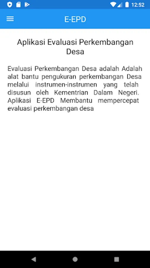 Evaluation of Village Development is a tool to measure village development through instruments that have been prepared by the Ministry of Home Affairs. E-EPD Application Helps accelerate the evaluation of village development