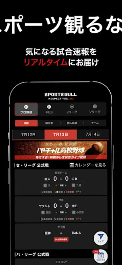 Sports Bull is an Internet sports media that provides live streaming centered on student and amateur sports and the latest sports news of more than 40 sports for free. While traveling, taking a break, even in a futon... All sports information in your hands!