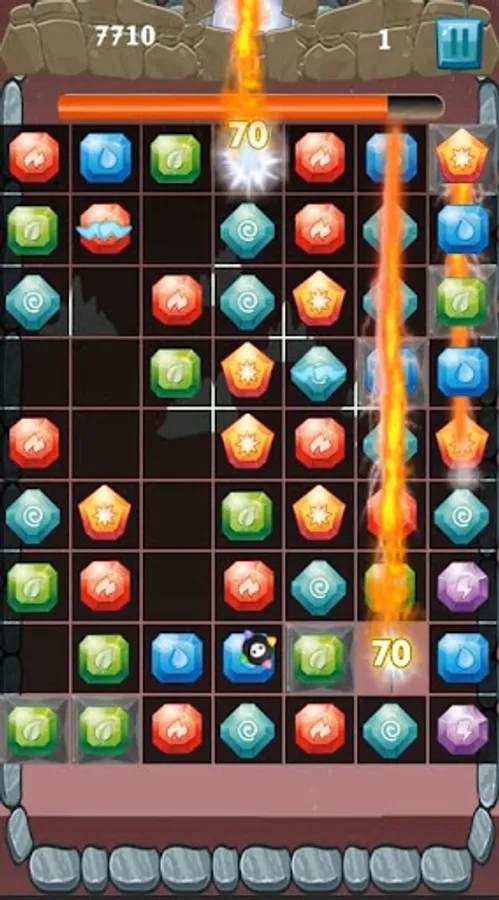 Connecting to a number of identical stones from three or more stones. Get bonuses. The game itself takes place in the genre of "three in a row", the essence of which - to swap two adjacent elements so as to obtain a series of 3 or more identical stones. At each level is given a purpose, when the level of which is considered complete