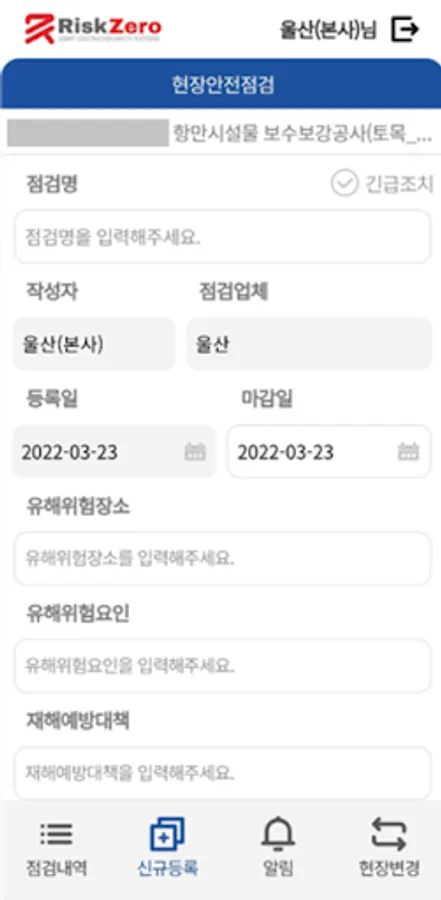 Disaster prevention response system for on-site inspection and harmful risk factors