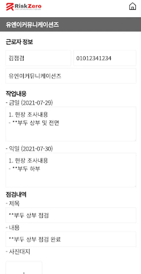 Through the app, you can register inspector access and register inspector leaving the office. In addition, it is possible to create a work report, such as the contents of today's work and the next day's work.