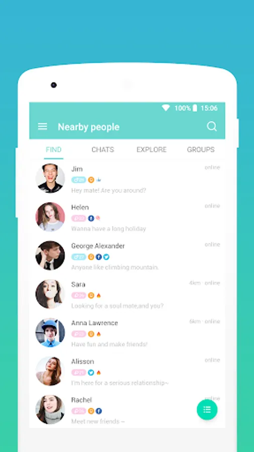 1. Meet and chat with nearby people. Locate fellow users on the map and engage them in exciting conversations.