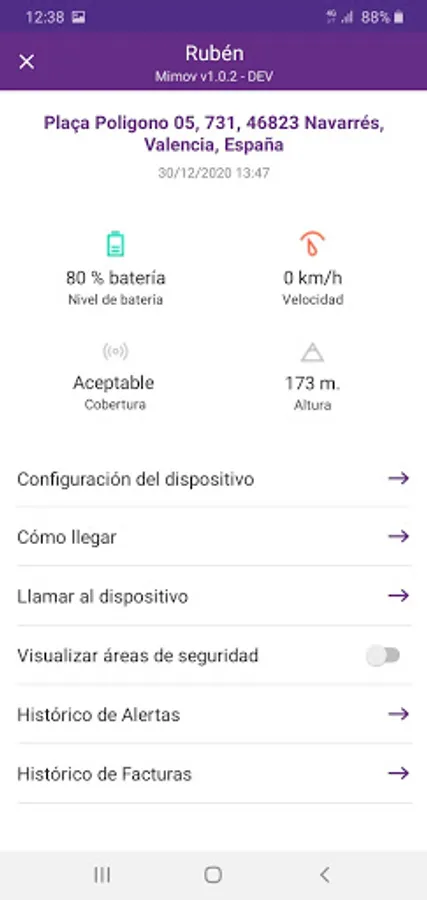 Application for family members and caregivers to monitor, configure and manage the Mimov service in mobility.