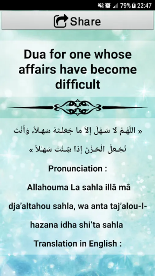 Islamic Dua – Daily Dua is an app that helps you know, learn, remember and rehearse Islamic Duas from Holy Quran. Dua is the very essence that connects us to Allah. Dua is uplifting, empowering, liberating and transforming and it is one of the most powerful and effective act of worship a human being can engage in. Dua has been called the weapon of the believer. It affirms a person’s belief in One God and it shuns all forms of idolatry or polytheism. Dua is essentially submission to God and a manifestation of a person’s need for God. The app will help Muslims irrespective of their age, whether kids or adults learn and understand different supplications that are useful in daily life and other occasions.