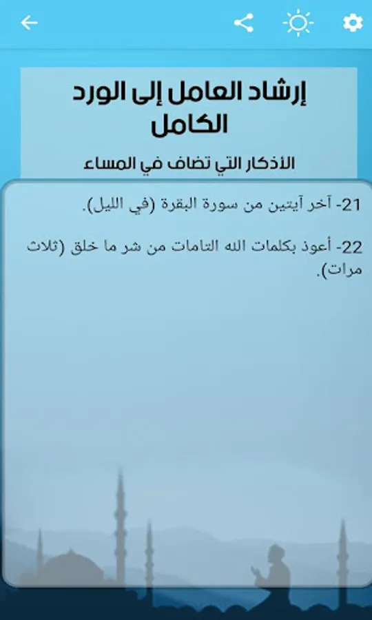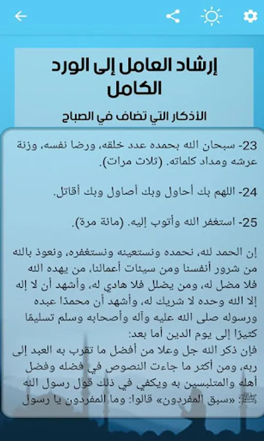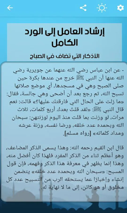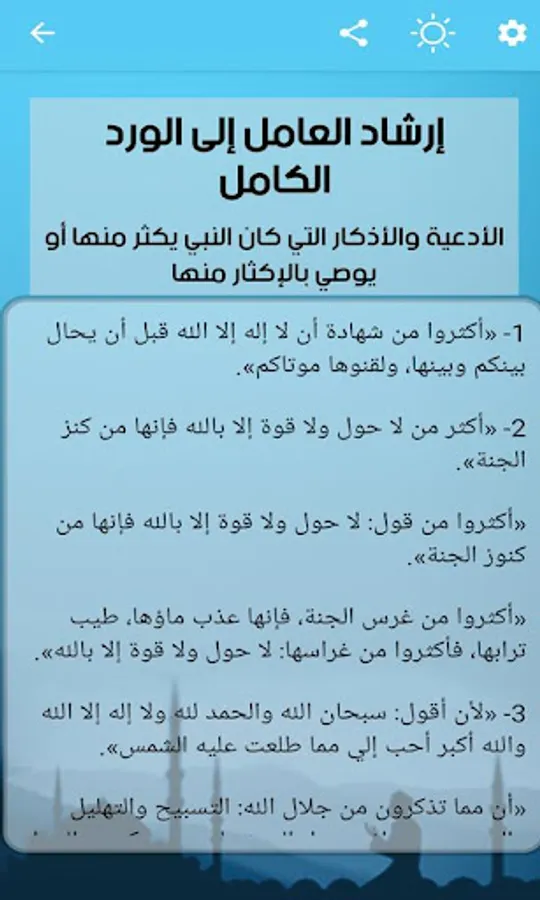 Guidance of the worker to the full response: This letter concerned with the collection of dhikr and wirds that every Muslim should be keen on, namely: Dhikr said in the morning and evening, and added in the evening, and added in the morning, and prayers and dhikr that the Prophet - peace be upon him - Too many or recommend a lot of them.