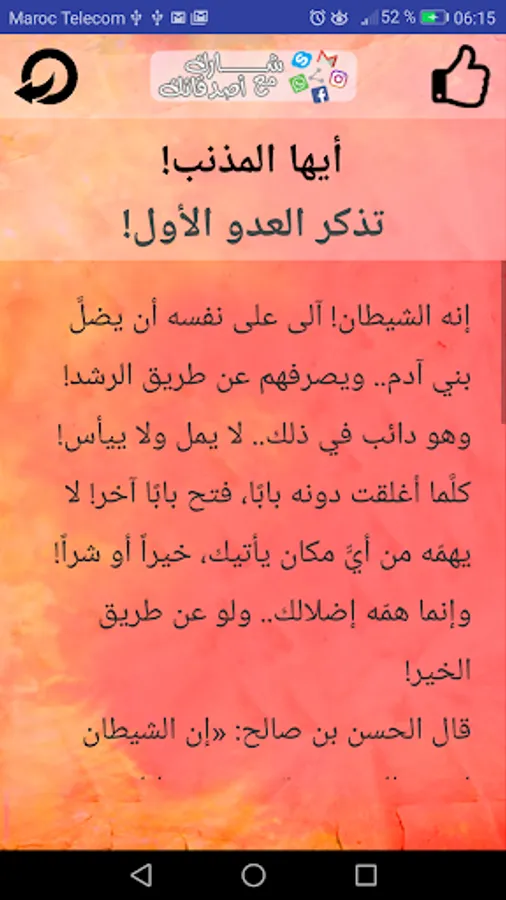 A man of Hasan Basri: O Abu Said Oanam the devil said ?! Vtbasm, said: «If Nam Shna»!