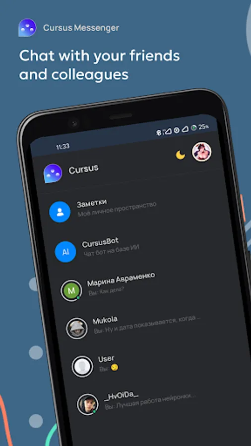 A new way to communicate. Optimized interface, chic design, and lightning speed to ensure comfortable and convenient communication with your friends.