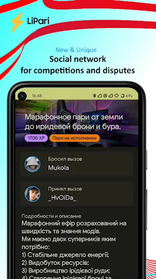 Unesell LiPari - provides a unique platform for creating bets and disputes between users. Be part of an exciting community where you can put your skills, courage, and even humor on the line.