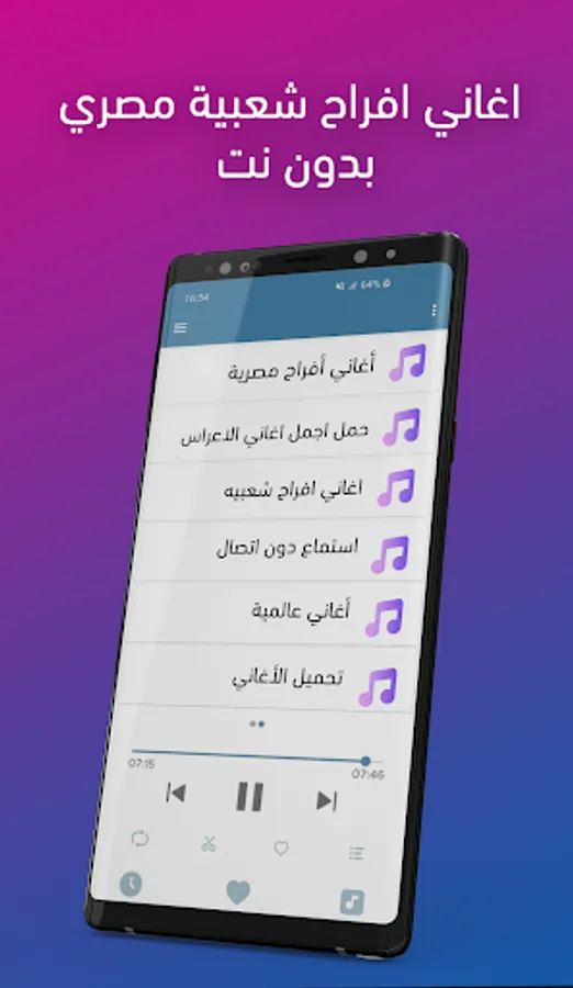 1. Diverse library: The application contains a huge library of modern and classic Egyptian popular songs and albums. In it you will find the most famous and famous works of famous Egyptian singers and artists.