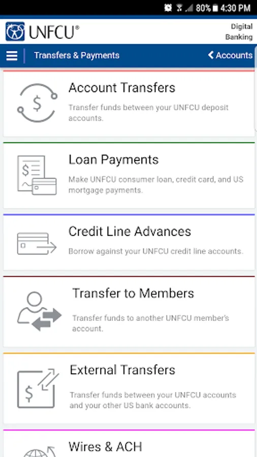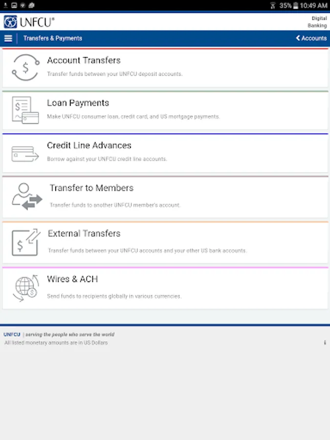• Make UNFCU loan, credit card, and US mortgage payments.
