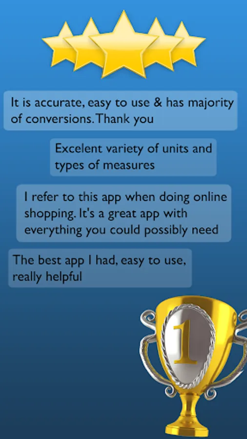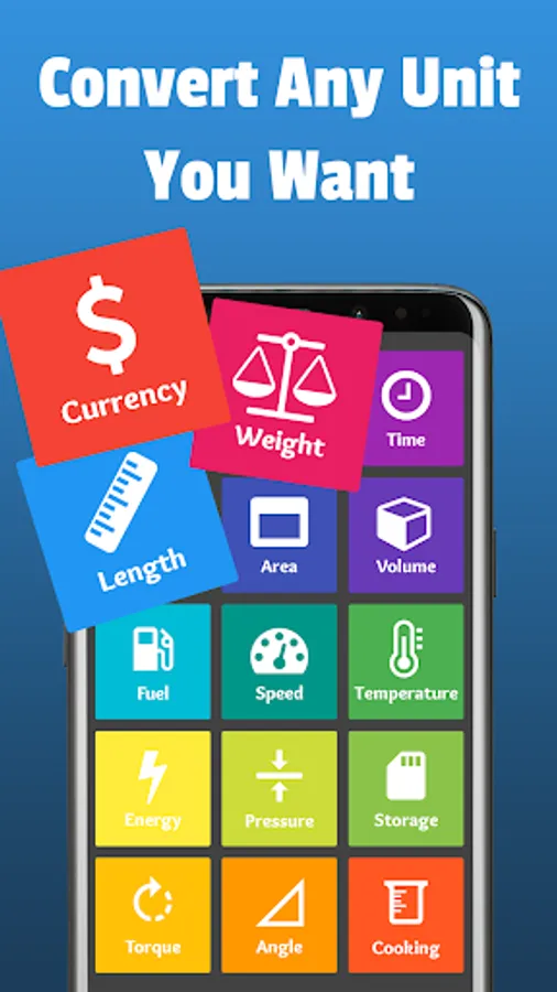 The app is simple and easy to use with intuitive UI that makes it the most convenient conversion tool. It includes many categories such as length, weight, area, fuel consumption, pressure, speed, time, volume and more, so everything you need is already here!