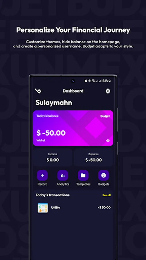 - Create a personalized homepage with a customizable username, making your financial journey truly yours.