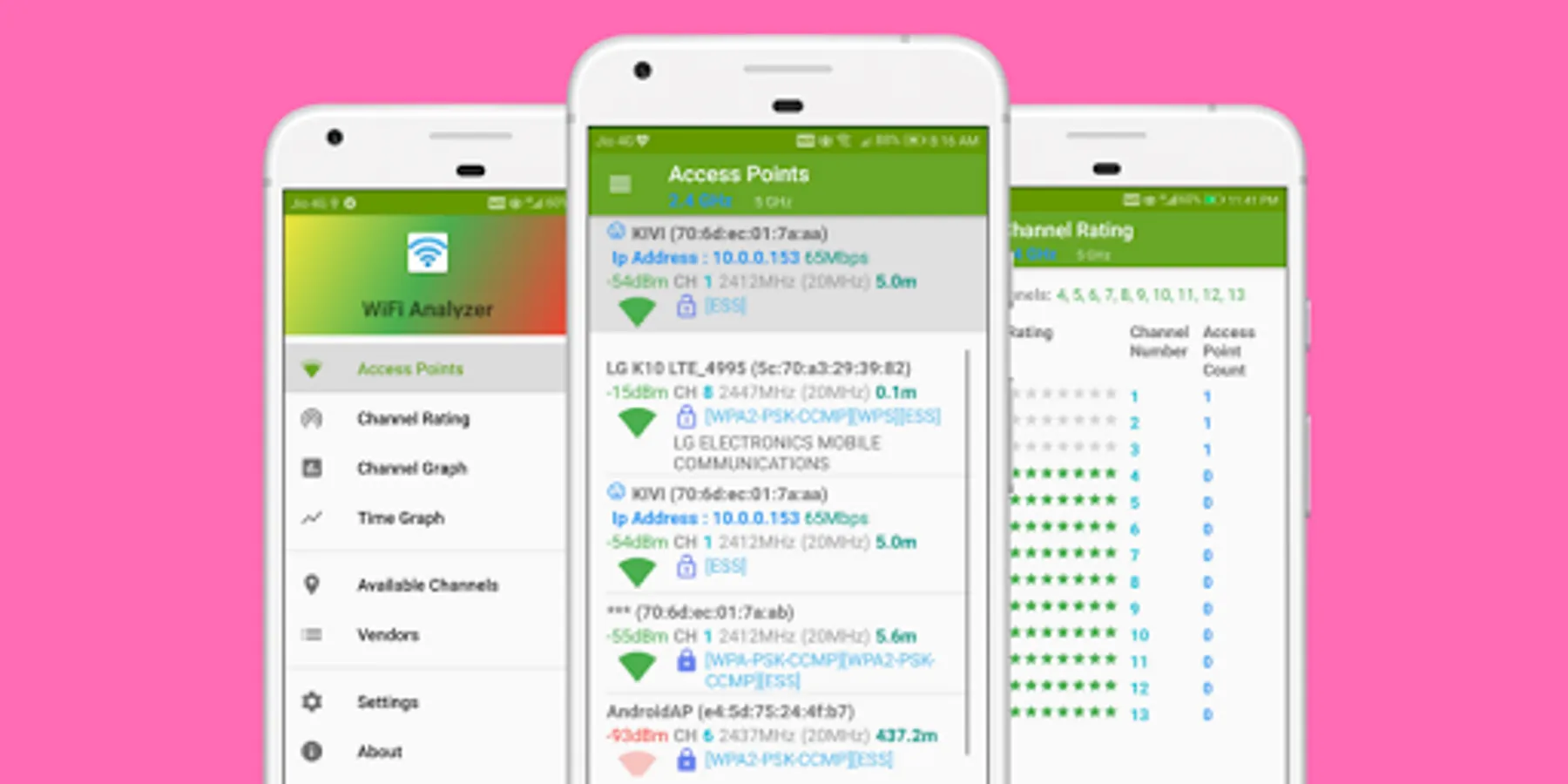 WiFi Analyzer application used to optimise wifi Networks by scanning signal strength, Crowded signal, Channel rating, Estimated distance And much More.