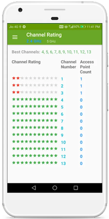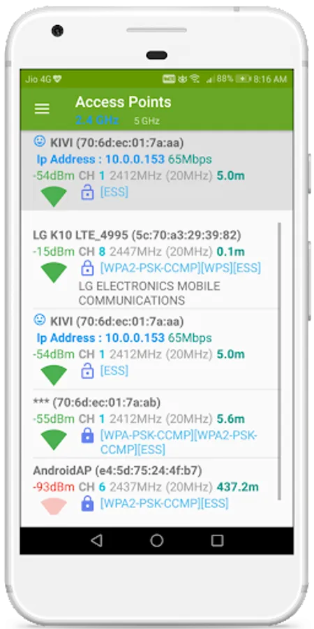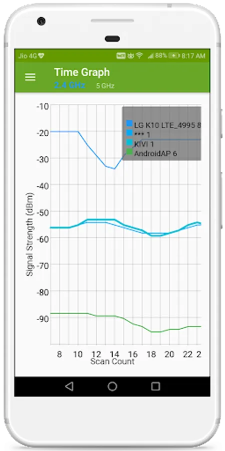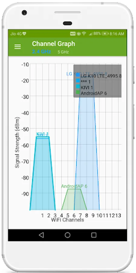 - Tap the title bar to switch between 2.4 and 5 GHz WiFi band.