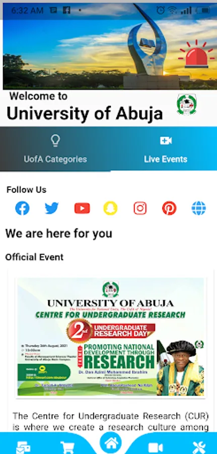 It also gives live update of Events happening on both Campuses (Main/Mini).