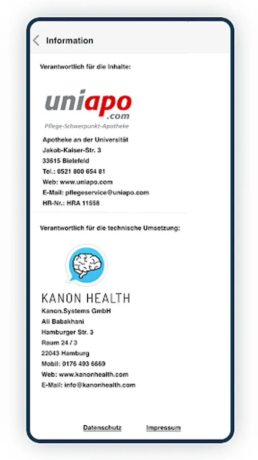 The app creates a password-protected document as a PDF based on images that the user creates using the cell phone camera. The app sends this document to the uniapo.com back office via an end-to-end encrypted interface and a server in Germany. This processes the order or the order.