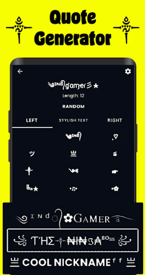 With this name generator app you can create lots of cool nick names of your's and you never need any designer to make your dp extra cool and hd.