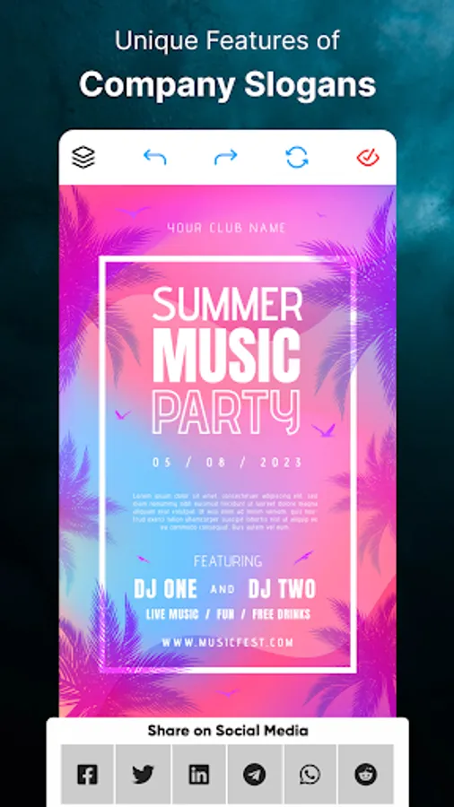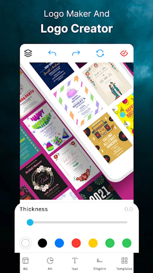 You can have plenty of logo making templates, text arts, shapes, stickers, slogans and you never need to use complex designing software because this is specially made to ease your logo maker work.
