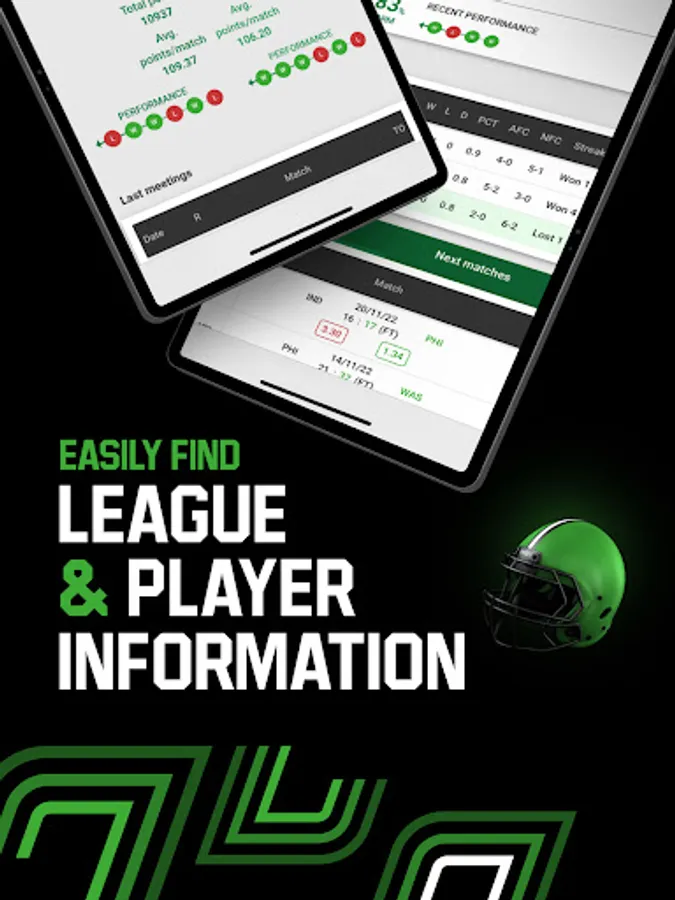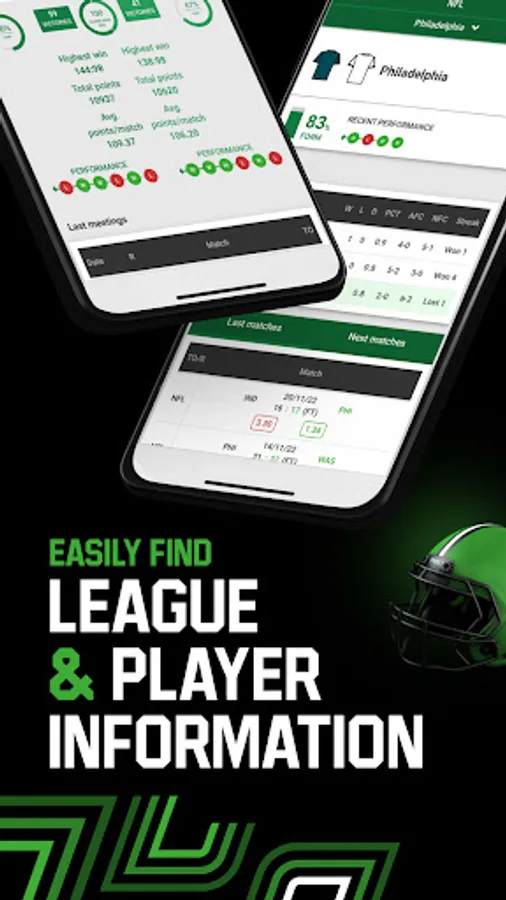 Quickly and easily find comprehensive stats about players and events that you can bet on without leaving the app, including: