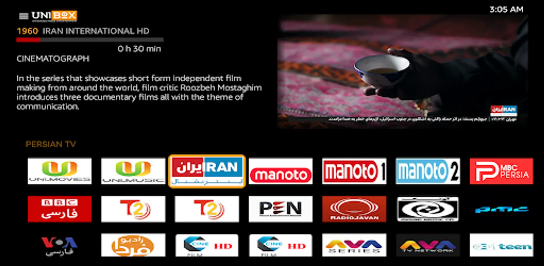 With UniBox For Android TV you can watch all free local Persian tv channels online.