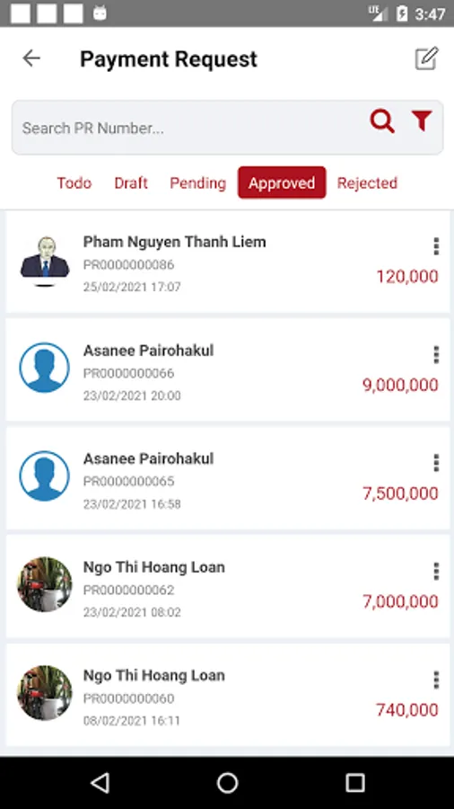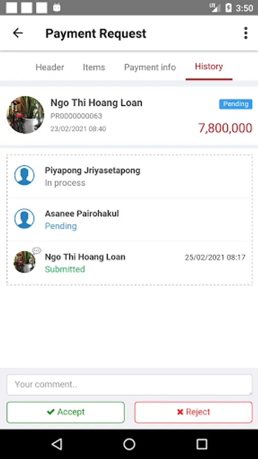 Create/approve payment request, payment voucher