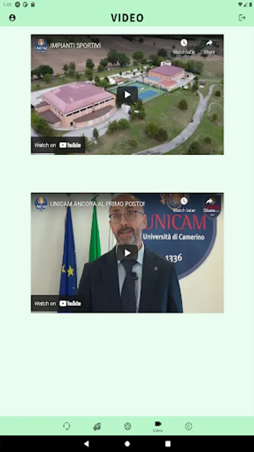 The App is divided into tabs that include Services, Partners, Sports and university videos.