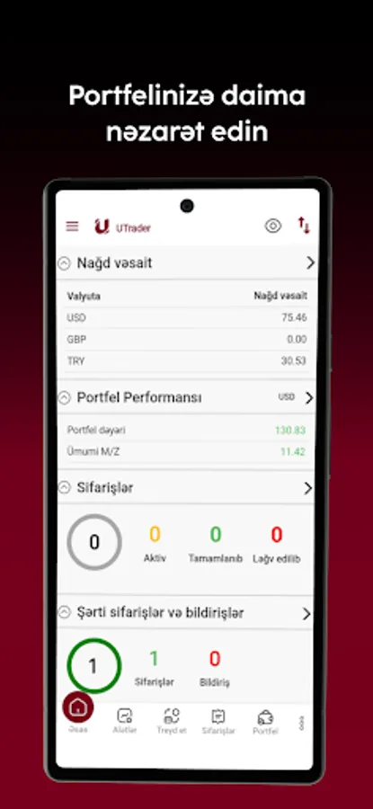 • Sifarişlərin idarə edilməsi və treydinq nəticələrinə nəzarət